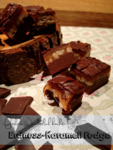 Ich rate euch DRINGEND dieses Rezept für Erdnuss-Karamell Fudge auch mal ausprobieren. Die Schokoschicht ist richtig schön cremig und die Karamellschicht ist relativ fest und zieht so richtig schöne Karamellfäden beim auseinander ziehen. Dazwischen befinden sich knackige Erdnüsse, die dem ganzen das gewisse Etwas geben.