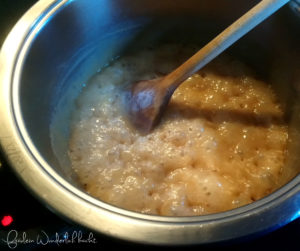 Gebt die Pflanzenmilch und den Zucker in einen großen Topf und lasst die Mischung aufkochen. Lasst sie sprudelnd kochen, bis die Masse anfängt etwas dicklich zu werden und sich goldgelb zu färben. Bei mir hat das ca. 20 Minuten gedauert.