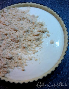 Backt die Tarte bei 175°C Umluft für ca. 50 Minuten. Die Streusel sollten goldbraun sein, falls sie drohen zu dunkel zu werden deckt die Tarte mit etwas Backpapier ab. Lasst die Tarte für einige Stunden, aber am besten über Nacht, vollständig auskühlen und fest werden.